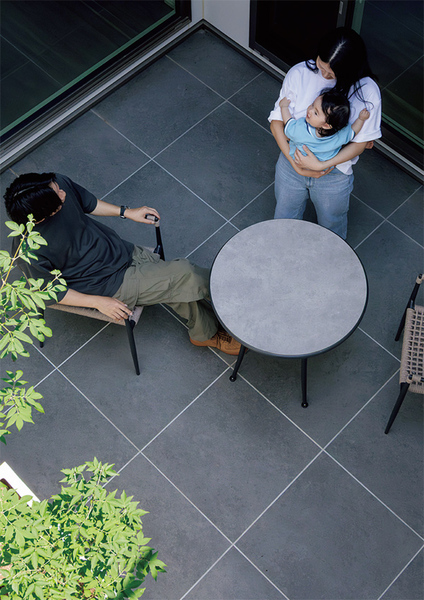 ⚫︎正方形のグレーのタイルを敷いて外時間を演出した⚫︎