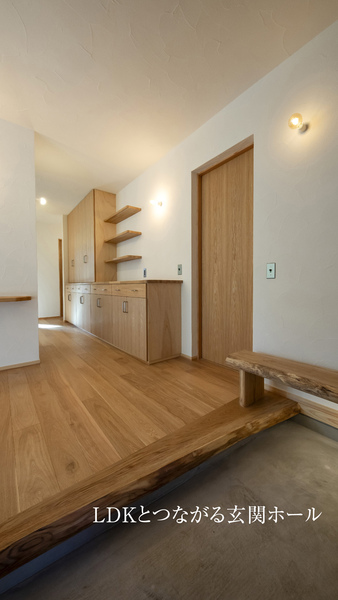 右手ドアの先はトイレと主寝室。玄関の天然木の