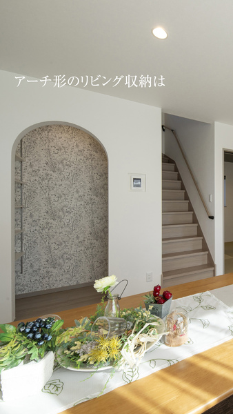 個性ある壁紙とアーチ型の優し印象でLDKに
