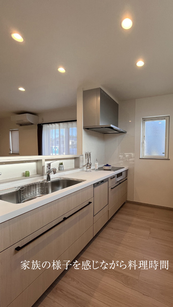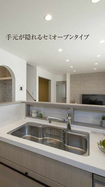 袖壁で調理台を目隠し換気扇から油煙が広がりにくい設計