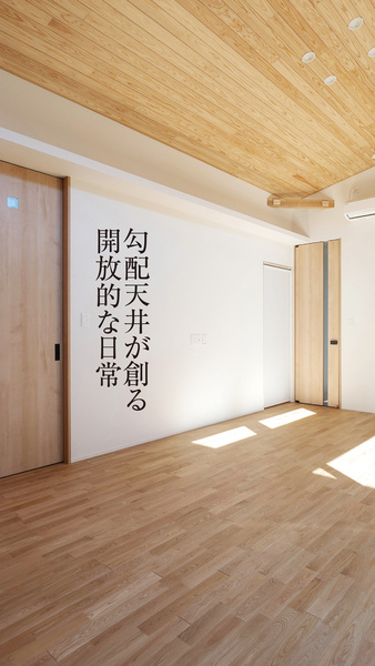 勾配天井の下で視線が奥へと抜け広がりを感じさせます
