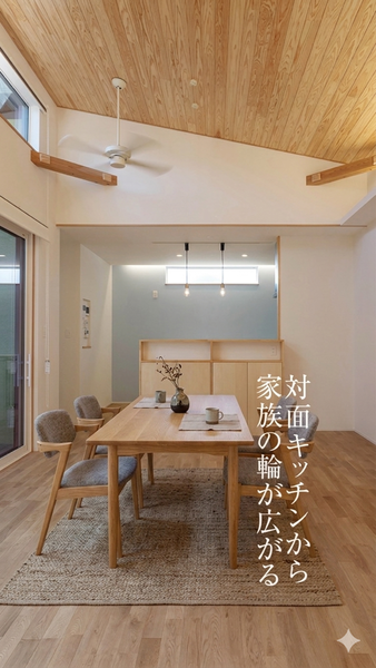 仕切りを排した開放的な構成が家族の時間をゆったりと繋ぐ