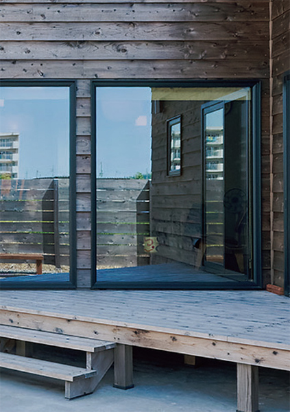 地元の魚沼杉を鎧貼りにした外観の平屋