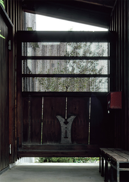 ⚫︎屋根と堀に囲まれた玄関、正面には古い蔵戸を設置⚫︎