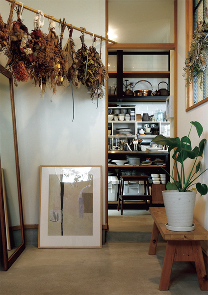 ⚫︎調理器具も器も吟味し棚に、奥にはアブウエイタイル⚫︎