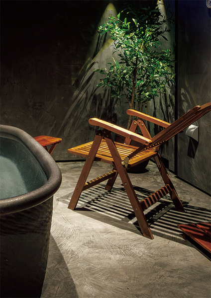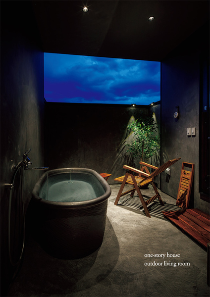 ⚫︎半屋外の空間にバスタブがあり右手にはサウナ室も設置⚫︎