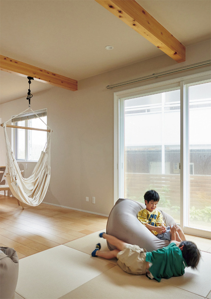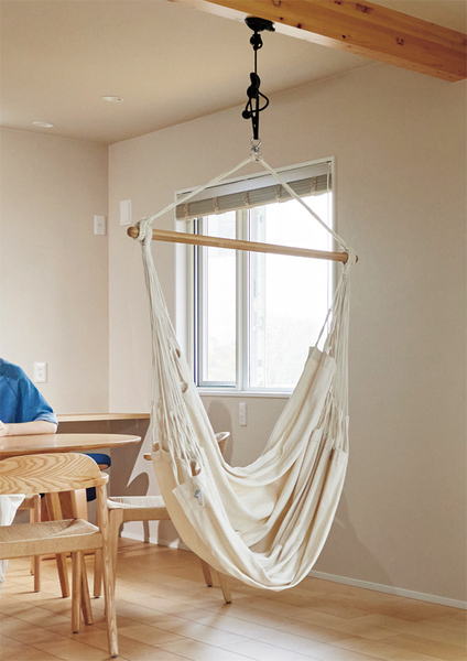 ⚫︎ハンモックを吊るすことを前提に梁をあらわしにした⚫︎