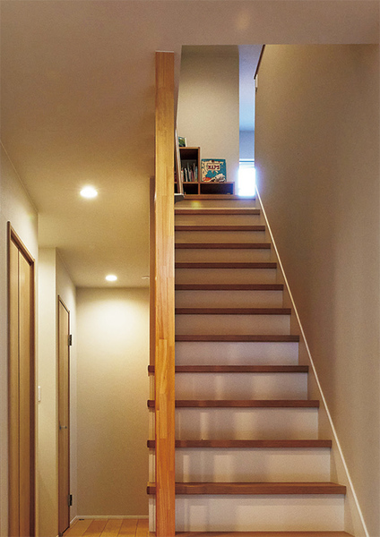 階段左横の壁は全て収納に。リビングス