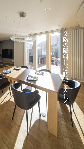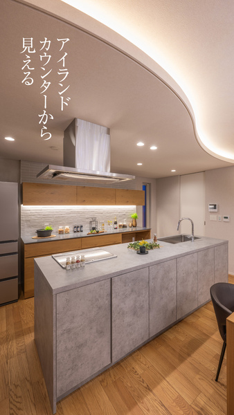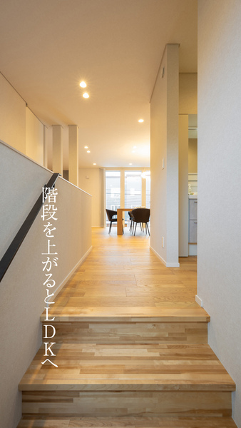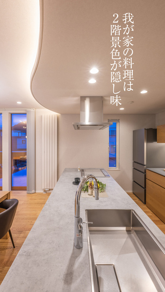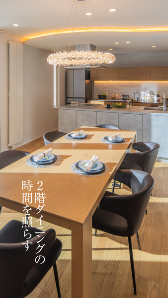 2階の開放的なDKはナラ材の造作家具で統一感を