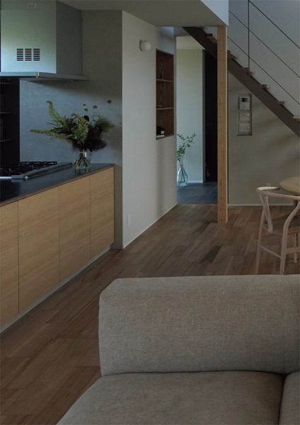 ⚫︎キッチンの壁には木のシンプルな造作棚をつけた⚫︎
