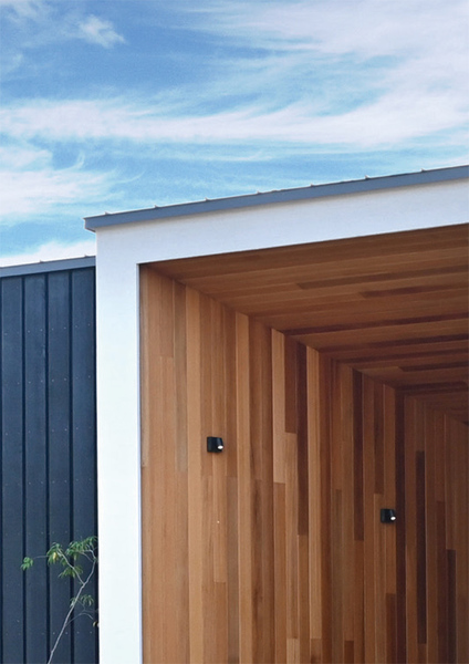 外観はガルバリウムの屋根と塗り壁の外