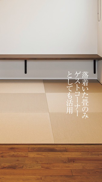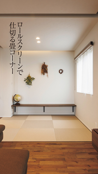 ロールスクリーンで2面を仕切れる畳コーナーは来客時の