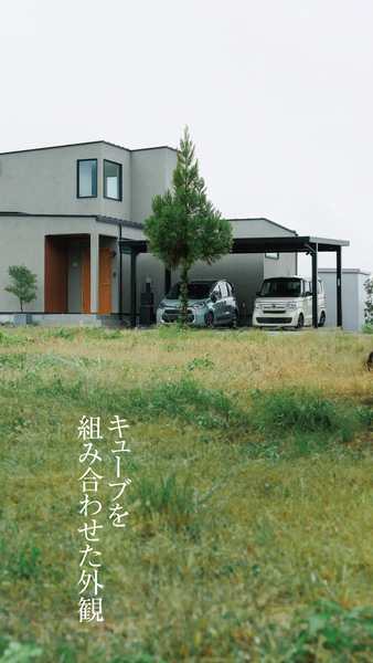 傾斜したキューブを重ねた外観西の景観を愉しむ2階の