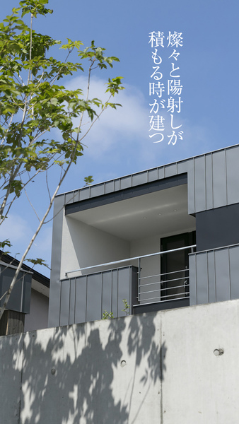 外壁はランダム張りしたガルバリウム鋼板が印象的