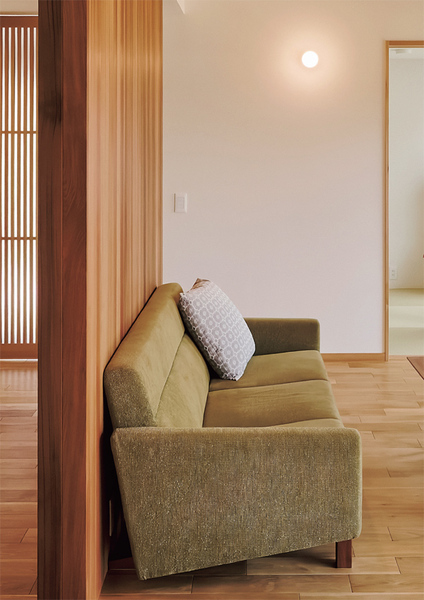 ⚫︎リビングと廊下を仕切る木製壁が室内に素材の癒しを⚫︎