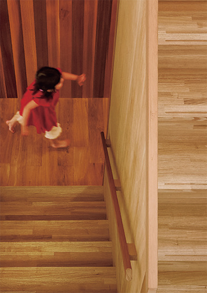 ⚫︎リビングから見えない位置の木の壁裏に階段を設置⚫︎
