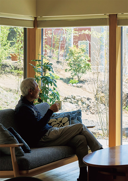 ⚫︎リビングのソファで庭を眺めて寛ぐご主人⚫︎