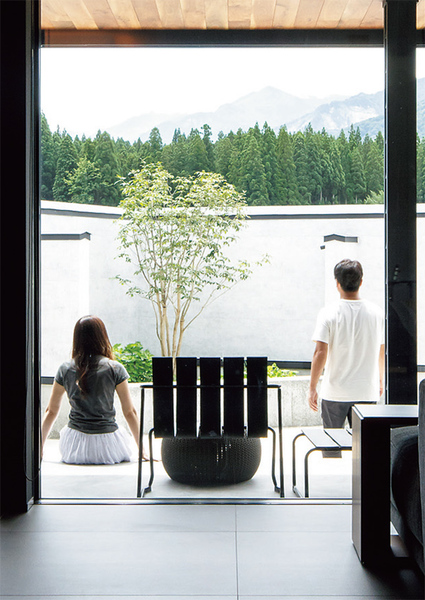 ⚫︎半屋外の空間にバスタブ。右手にはサウナも⚫︎
