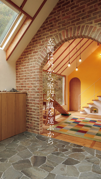玄関は暖かみのあるレンガをアーチ型に組み合わせた設計