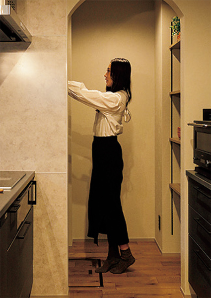⚫︎キッチンの奥にはアールの垂れ壁のあるパントリー⚫︎