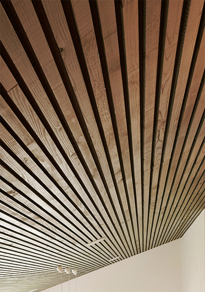 ⚫︎片流れの屋根に沿って下りる格子天井⚫︎